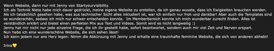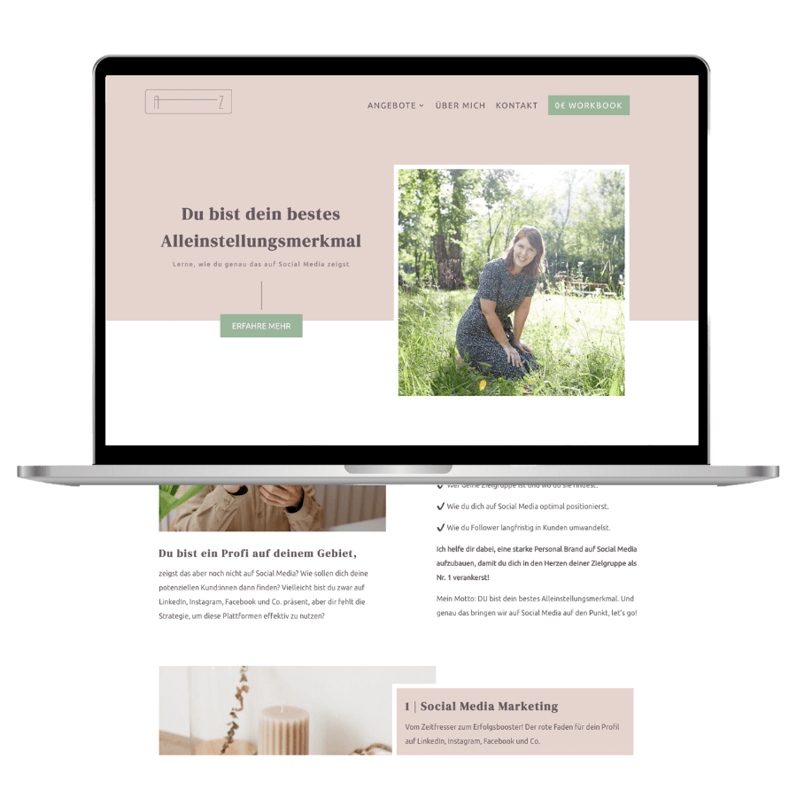 Du bekommst eine strategisch aufgebaute Website, die deine Wunschkundinnen anspricht und kannst sie danach selbst anpassen, ohne eine Zeile Code zu schreiben.